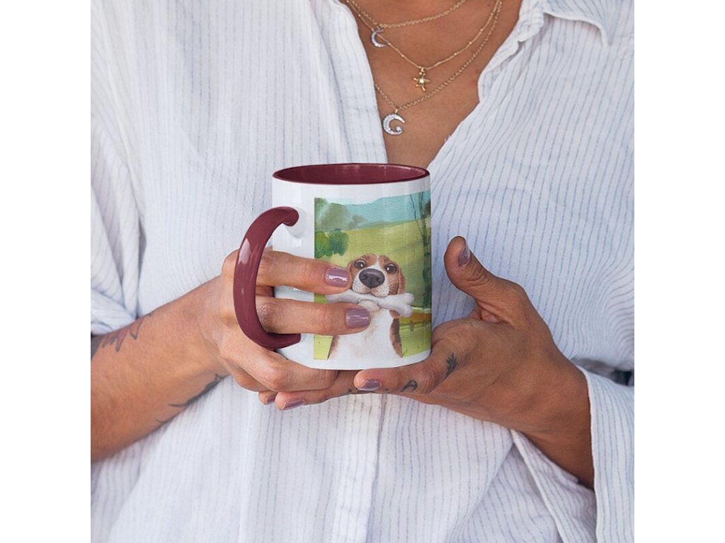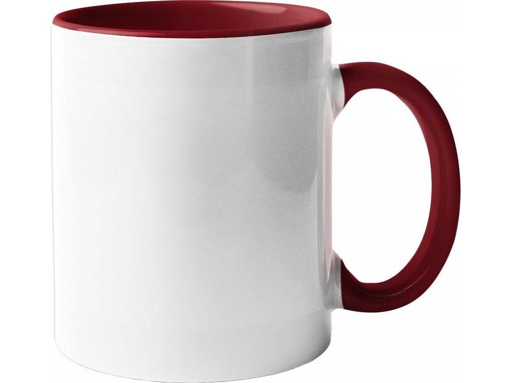 Keramický bílý hrnek s barevným vnitřkem a uchem pro sublimační potisk.