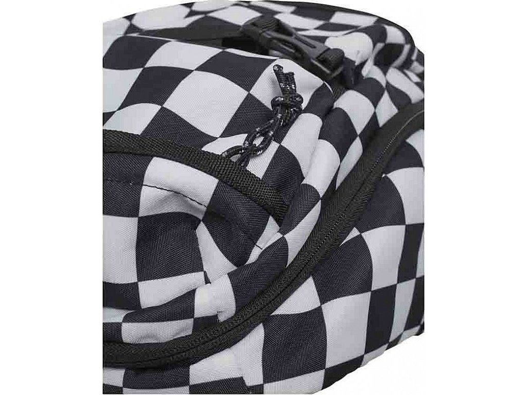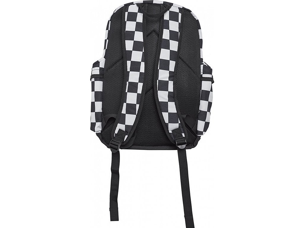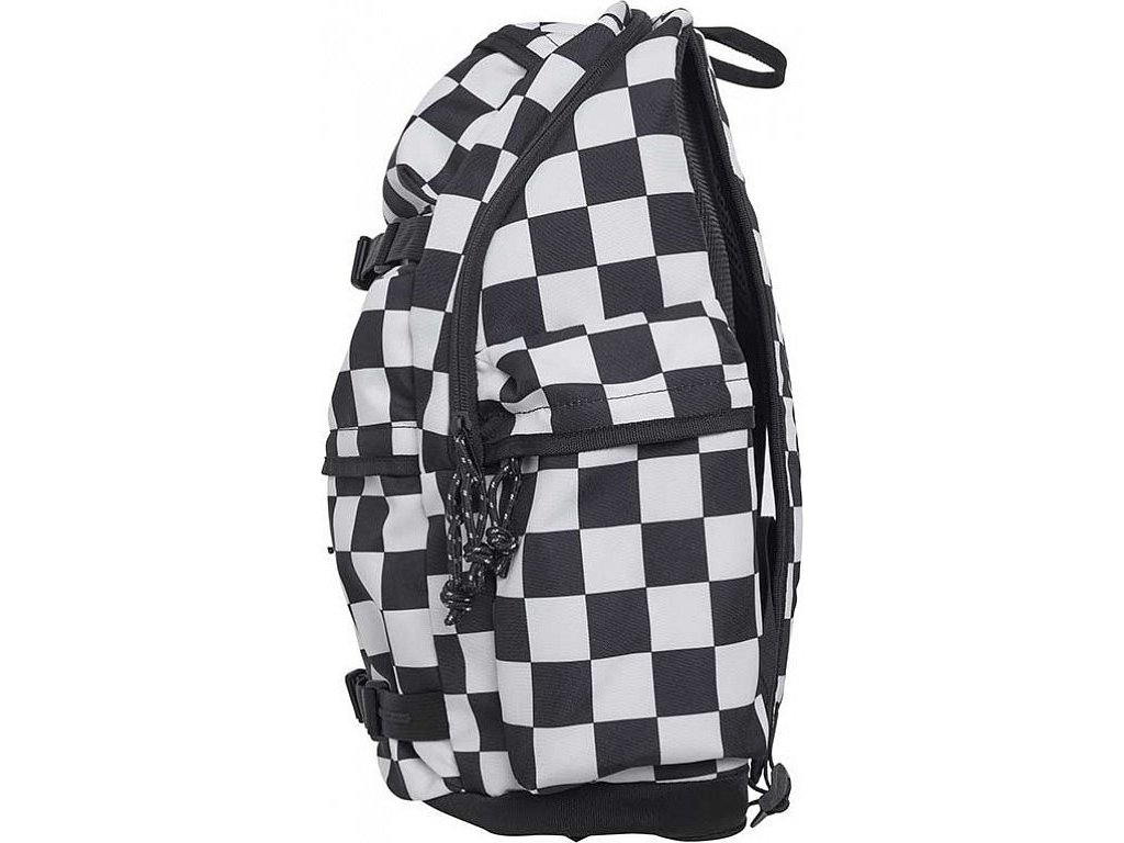 Batoh schovává jednu velkou kapsu. V přední části jsou ještě dvě menší kapsy na drobnosti, které chcete mít po ruce. Nesmíme zapomenout také na dvě boční kapsy na láhve s pitím, což jsou velmi praktické pomůcky. Zip na kapsách je zakončen provázkovou tkaničkou pro lepší úchyt při manipulaci s kapsami. Spolu s originálním šachovnicovým designem tvoří všestranný neformální doplněk, který si hned oblíbíte. Batoh se může prát v pračce, a to na 40°.